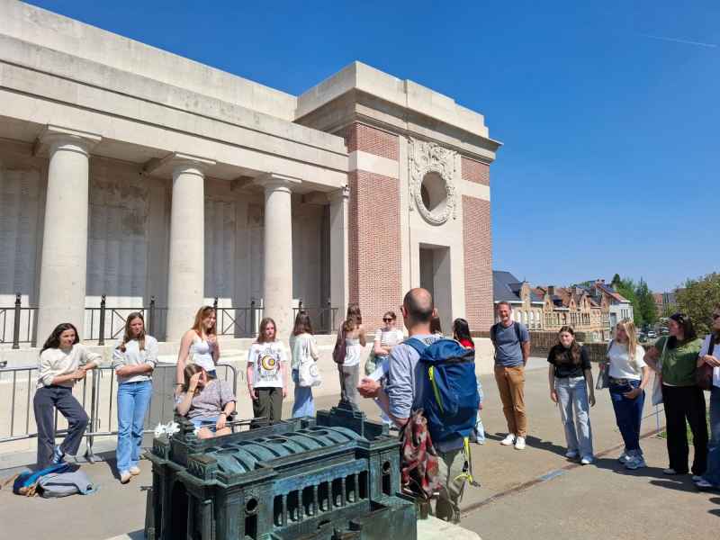 Er was ook tijd om stil te staan bij de gevolgen van de oorlog. Een bezoek aan de Menenpoort en Britse en Duitse begraafplaatsen zorgde voor een moment van bezinning. Dit in schril contrast met de oorlogsretoriek van de legerleiding en de propaganda waarmee het thuisfront destijds werd zoet gehouden.