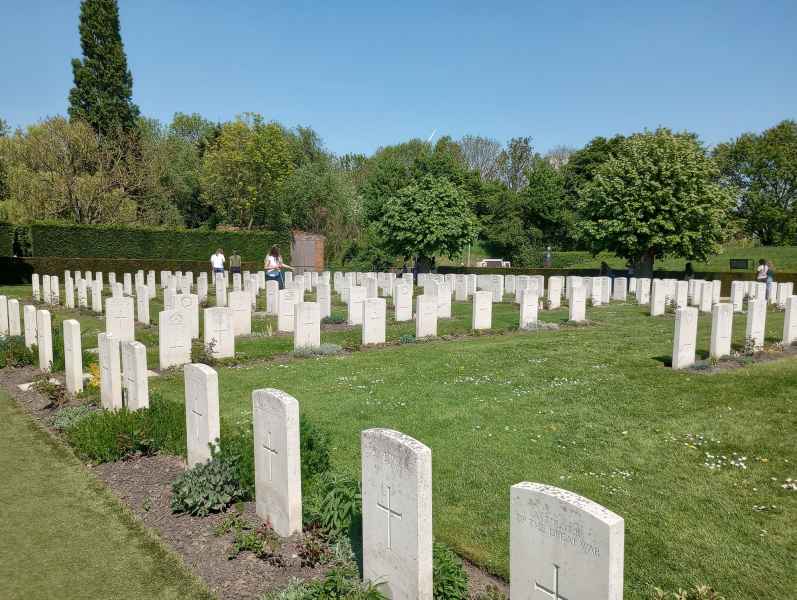 Er was ook tijd om stil te staan bij de gevolgen van de oorlog. Een bezoek aan de Menenpoort en Britse en Duitse begraafplaatsen zorgde voor een moment van bezinning. Dit in schril contrast met de oorlogsretoriek van de legerleiding en de propaganda waarmee het thuisfront destijds werd zoet gehouden.