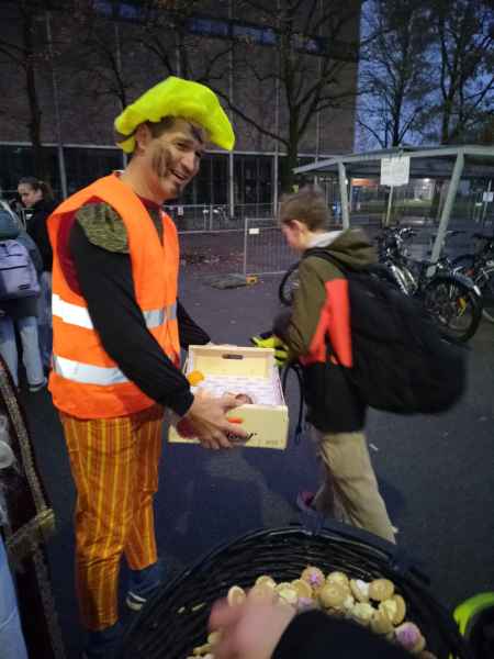 Met brede glimlachen deelden ze mandarijntjes en koekjes uit aan iedereen die passeerde, en die werden duidelijk gesmaakt. Tegelijk kreeg onze boodschap rond zichtbaarheid en veiligheid een stevige duw in de rug. Leerlingen die met fluo naar school kwamen of een helm droegen, maakten opnieuw kans op een leuke prijs. En ja: de sint zag ontzettend veel brave leerlingen! Maar hij merkte ook op dat sommige fietsen best nog wat meer verlichting kunnen gebruiken. Een vriendelijk knipoogje, met een duidelijke reminder: zien en gezien worden maakt echt het verschil.